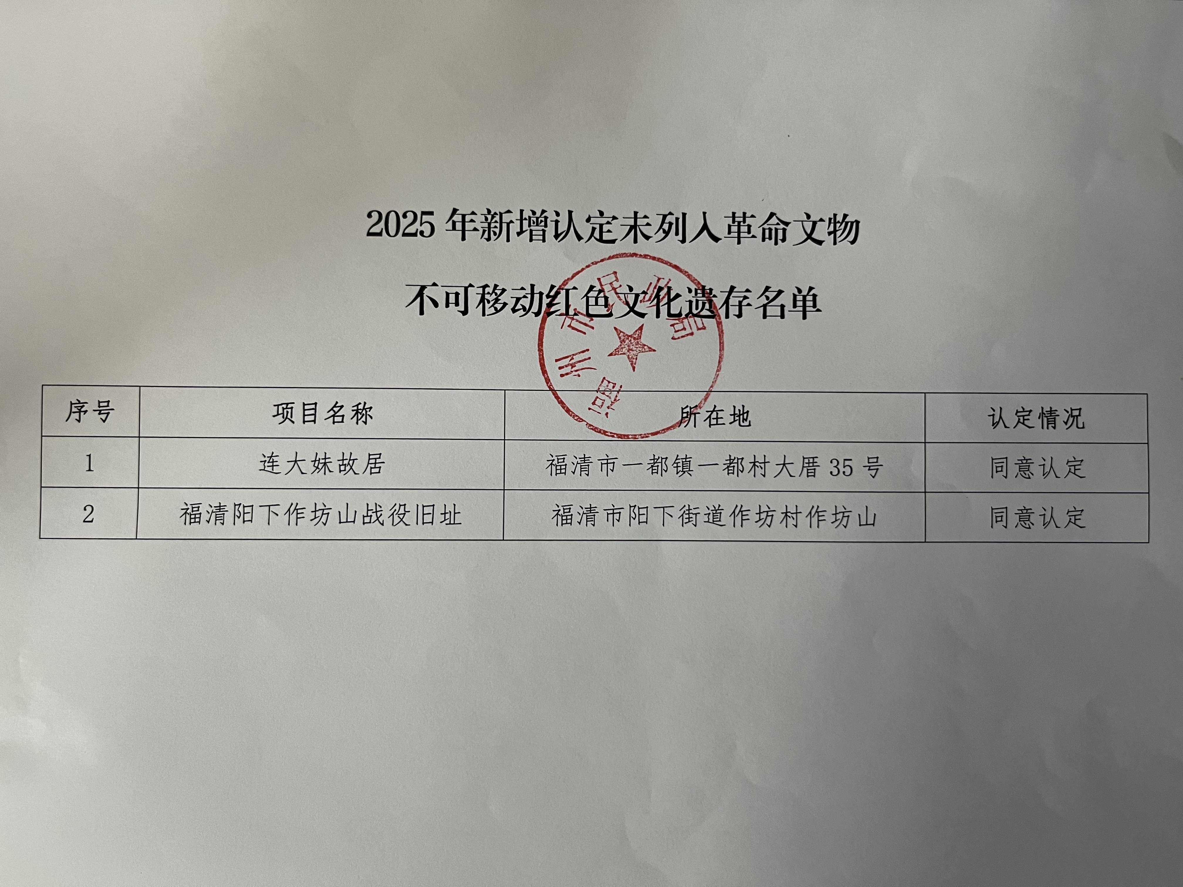 2025年新增认定未列入革命文物不可移动红色文化遗存名单